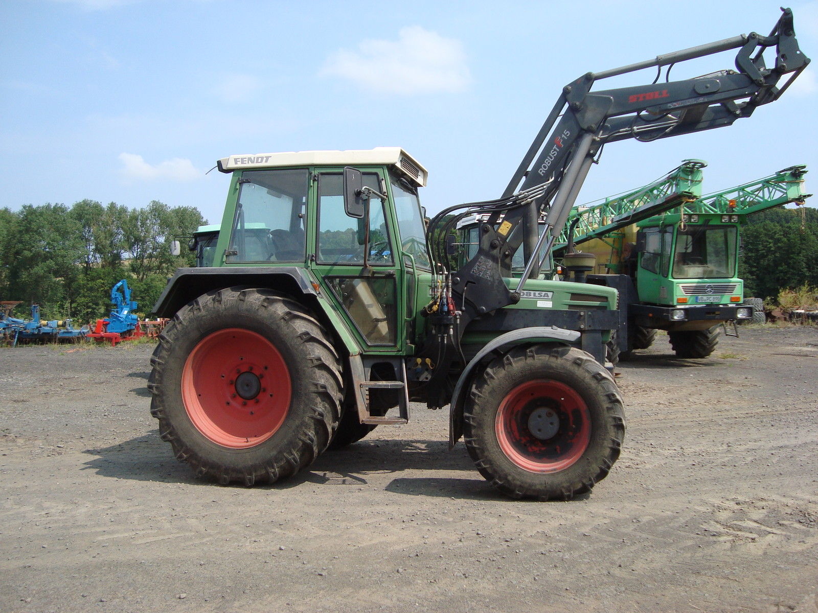 Baujahr 1997 , mit Stoll Einfahrfrontlader Robust F15, mit 8.120 Std. , 40km/h , Bereifung vorne 380/70R24 ca. 30%, Bereifung hinten 480/70R34 ca. 70%. Der Schlepper ist einsatzbereit, wird jedoch ohne jegliche Garantiegewährleistung versteigert.