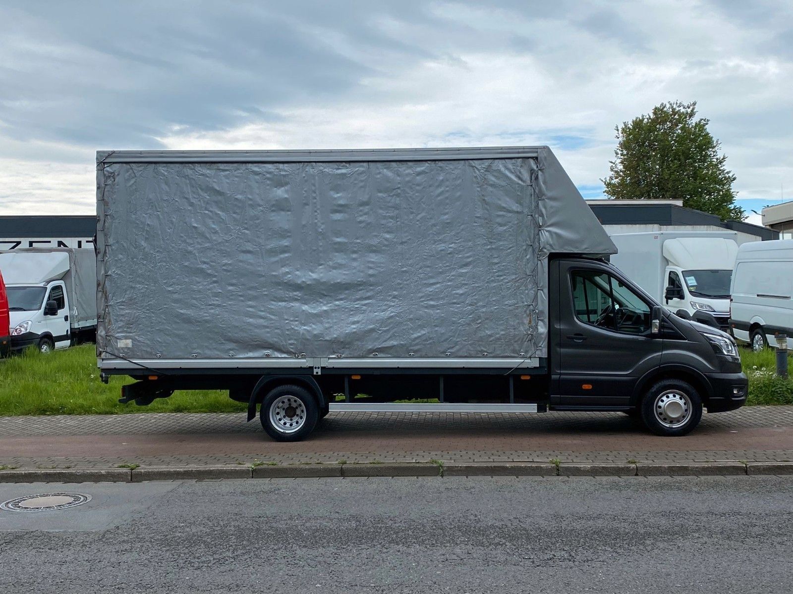 Ablage im Dachhimmel Fahrerhaus, Airbag Fahrerseite, Außenspiegel elektr. verstell- und heizbar, Außenspiegel elektr. verstell- und heizbar, Haltearm lang, Bordcomputer, Dockingstation (MyFord Dock), Elektr. Bremskraftverteilung (EBD), Elektron. Traktionskontrolle, Fahrassistenz-System: Berganfahr-Assistent, Fahrassistenz-System: Notbrems-Assistent, Fahrassistenz-System: Seitenwind-Assistent, Fahrassistenz-System: Spurhalteassistent, Fahrtenschreiber digital, Fzg. ohne Anti-Blockier-System (ABS), Generator verstärkt, Handschuhfach abschließbar, Heizung mit Umluftschaltung, Innenleuchten im Fahrerhaus: Leseleuchte vorn, Kaltstart-Paket, Karosserie/Aufbau: Pritsche, Kühlergrill mit Chromleiste, Kühlergrill schwarz grau, Lenksäule (Lenkrad) höhen-/längsverstellbar, Motor 2,0 Ltr. – 125 kW TDCi KAT, My Key (2. Fahrzeugschlüssel programmierbar), Radstand 3954 mm, Reserverad in Fahrbereifung, Schadstoffarm nach Abgasnorm Euro 6d-TEMP, Scheinwerfer-Assistent mit Tag-/Nachtsensor, Start/Stop-Anlage, Trend, Wärmeschutzverglasung leicht getönt, Zweiter Schlüssel mit Fernbedienung, Zwillingsbereifung an 2. Achse / Hinterachse