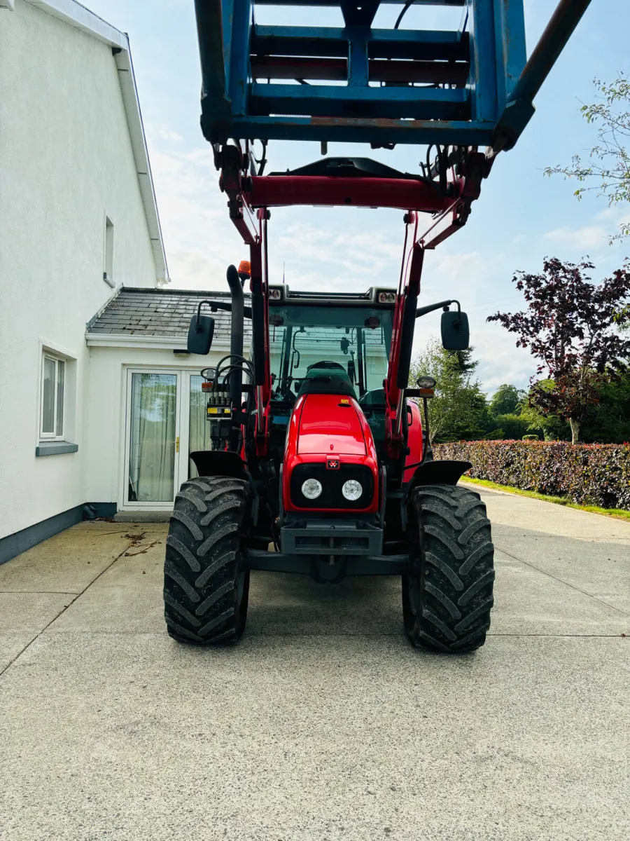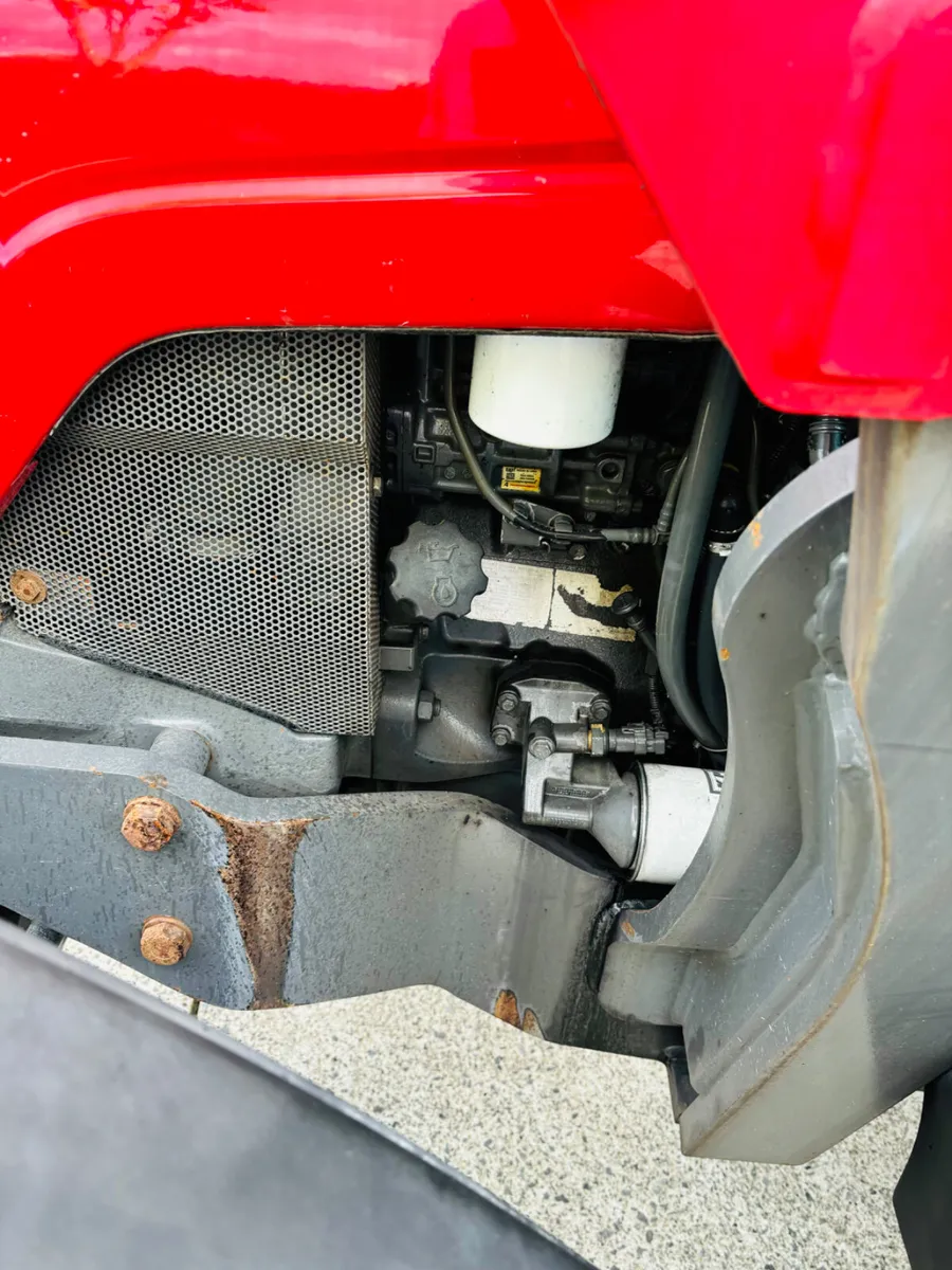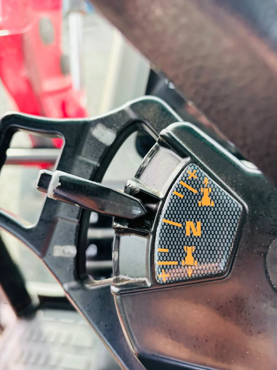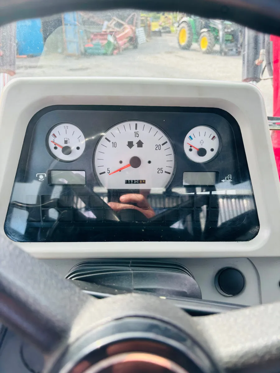 Landwirt mit Joystick-gesteuertem Frontlader und Dromone-Anhängekupplung.